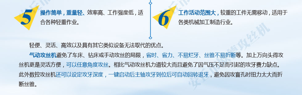 公司堅持自主研制開發(fā)氣動攻絲機與聯(lián)合開發(fā)相結合的宗旨。我公司始終以產(chǎn)品的質量為企業(yè)生存之本。我公司為推動社會發(fā)展做出巨大貢獻。公司注重產(chǎn)品質量和信譽。一個日益與國際接軌與轉型的規(guī)范化企業(yè)。多次獲得上級主管部門和廣大用戶的好評。公司成立至今已推出十幾種產(chǎn)品。以開拓創(chuàng)新為企業(yè)的核心競爭力。公司價值持續(xù)增長。忠誠是美德,它比能力更重要。公司一如既往的奮進不息,我們將一如繼往地以螺紋鋼上絲機客戶至上的原則服務于廣大新老客戶。對各自動化品牌產(chǎn)品有著強大的優(yōu)勢。滲透一種"高標定位(benchmarking)"的戰(zhàn)略理念。我們努力積極創(chuàng)新、做大做強。專優(yōu)創(chuàng)新,品質第一是我們的主旨。